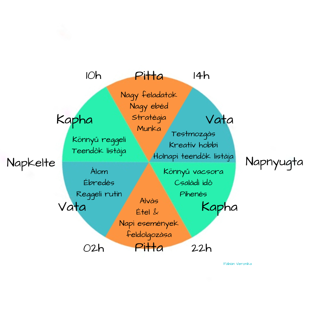 | A nap ritmusa Ájurvéda szerinti felosztásban (kép forrása: saját munkám) |