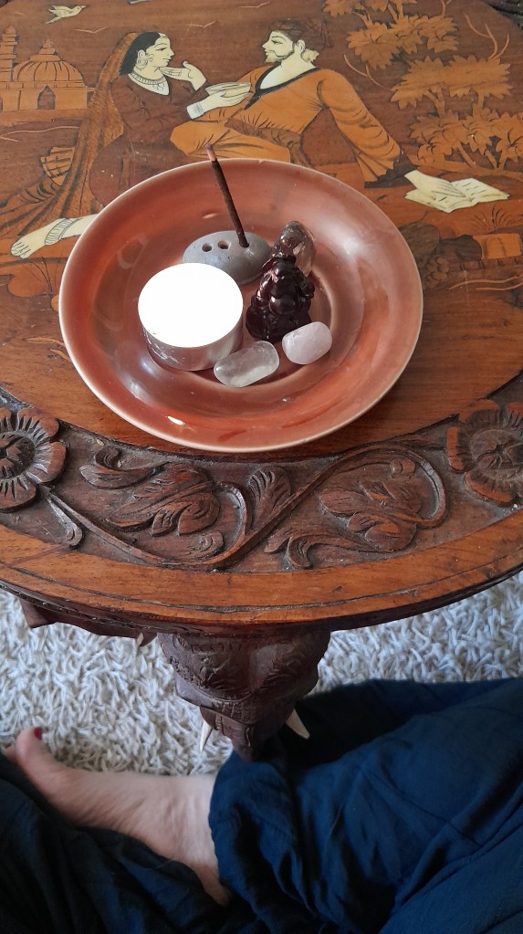 Mi kell ahhoz, hogy igazi elvonulás-hangulatba kerülj? Mert ami érzelmileg igazán megérint minket, az lesz ránk maradandó hatással. Tehát kell, hogy legyen hangulat. Nekem többek közt szükségem volt arra, hogy rend legyen körülöttem (a szanaszét szaladó kacatok végig elvonták volna a figyelmemet), így már előző nap rendet raktam. Előkészítettem a gyertyákat, füstölőket, kristályokat, de a tea-alátétet is. Az pedig már a rituálé része volt, hogy használatba is vettem őket.